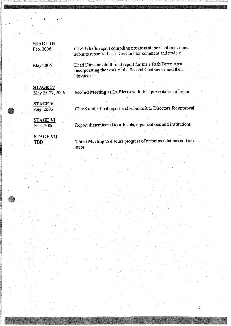Feb. 2006 CL&S drafts report compiling progress at the Conference and submits report to Lead Directors for comment and review May 2006 Head Directors draft final report for their Task Force Area, incorporating the work of the Second Conference and their "Invitees." STAGE IV