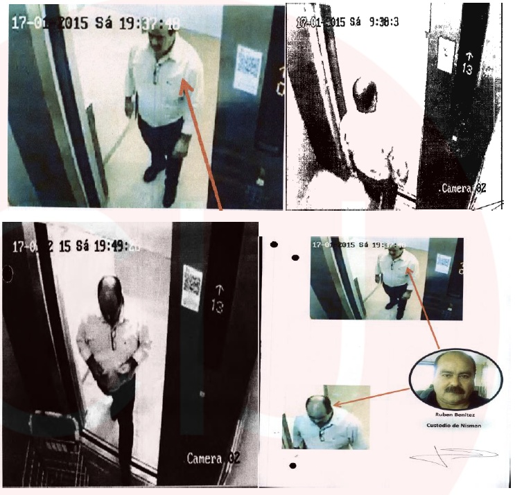 A las 14.12.12 horas, las grabaciones de vigilancia arrojaron que Rubén Fabián Benítez subió al departamento del Dr. Natalio Alberto Nisman por el ascensor de servicio.