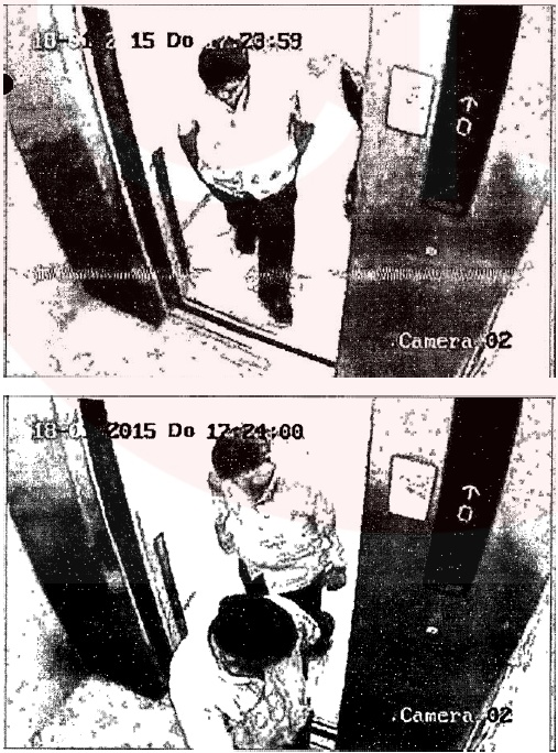 A las 13.17.30 horas, las grabaciones de vigilancia arrojaron que Rubén Fabián Benítez y Néstor Oscar Durán ingresaron en auto a las torres "Le Parc".