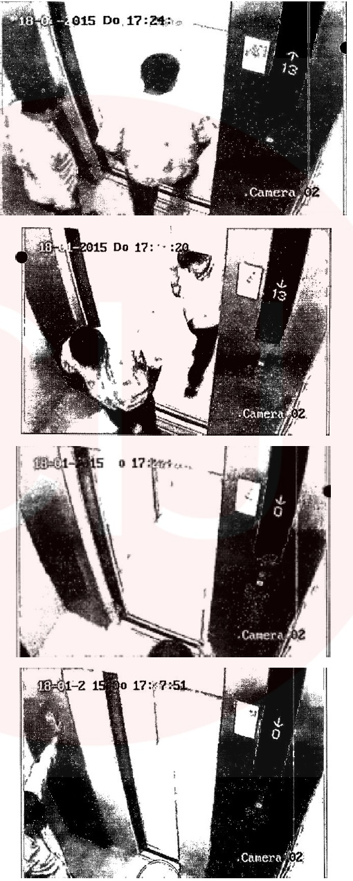 A las 13.20.17 horas, las grabaciones de vigilancia arrojaron que Rubén Fabián Benítez subió al departamento del Dr. Natalio Alberto Nisman por el ascensor de servicio.