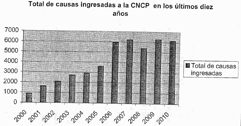 Estadísticas de la Cámara Nacional de Casación Penal, que dan cuenta de que en la última década hubo un incremento de 586% en la cantidad de causas ingresadas en este Tribunal.