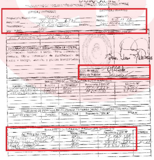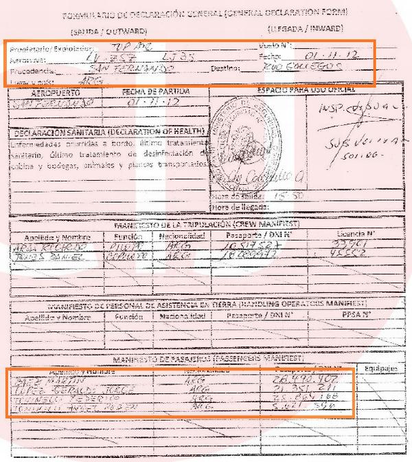 Más adelante señaló que para los casos de los vuelos internacionales el formulario de declaración general es establecido por la OACI (FDG -OACI) y el control de la identidad de los tripulantes y pasaj eros es efectuado por la Dirección Nacional de Migraciones, mientras que el equipaje y carga es controlado por la Dirección Nacional de Aduanas.