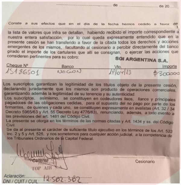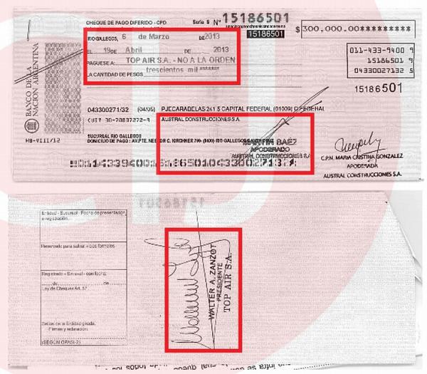 Con posterioridad a ello se añadió que "(...) de los videos se desprende la participación de otras personas, entre ellas, César Gustavo Fernández y Walter Adriano Zanzot. El testimonio recabado en el día de la fecha proporciona precisiones en el sentido indicado. A la fecha de los videos, César Gustavo Fernández revestía el cargo de Presidente de la sociedad. Zanzot, a su vez, es Presidente de la empresa de servicios aéreos atribuida a Lázaro Báez, Top Air S.A, firma propietaria de la aeronave matrícula LV-ZSZ, sindicada desde el inicio mismo de las actuaciones como uno de los posibles vehículos utilizados para el traslado de grandes sumas de dinero en efectivo. Su presunta participación, conduce a reforzar la sospecha en torno al medio por el cual pudieron haberse trasladado los fondos. Este panorama lleva entonces a habilitar la instancia del art. 294 del C.P.P. respecto de Fernández y de Zanzot, registrados en las imágenes en situaciones similares a la de los otros convocados, como así también de Lázaro Antonio Báez".