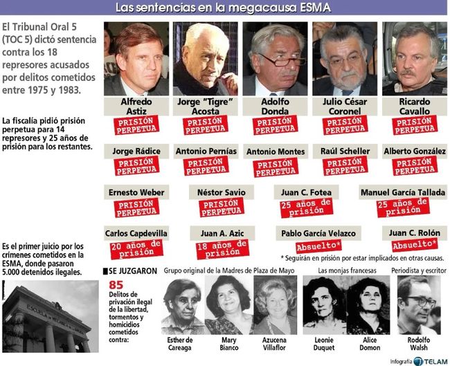 Es que, aunque parezca distante en el tiempo, esta historia de represión, tortura, muerte y negocios espurios, se remonta a los tiempos en los que estos personajes eran los verdaderos dueños de la vida y la muerte de todo aquel a quien la Dictadura considerara enemigo. Y el cuartel más importante de aquel "ejército sombrío" fue, sin lugar a dudas, la ESMA.