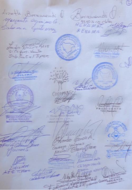 - Derogación de los Decretos Supremos y la leyes malditas que atentan contra la Madre Tierra y los Derechos de los Indígenas y trabajadores del campo y las ciudades, como ser la Ley Minera e Hidrocarburos, D.S. de avasallamiento de los Parques Nacionales, D.S. de ampliación de la frontera agrícola, Ley de Semillas, Leyes y D.S. a favor de transgénicos que matan las semillas nativas y otras.