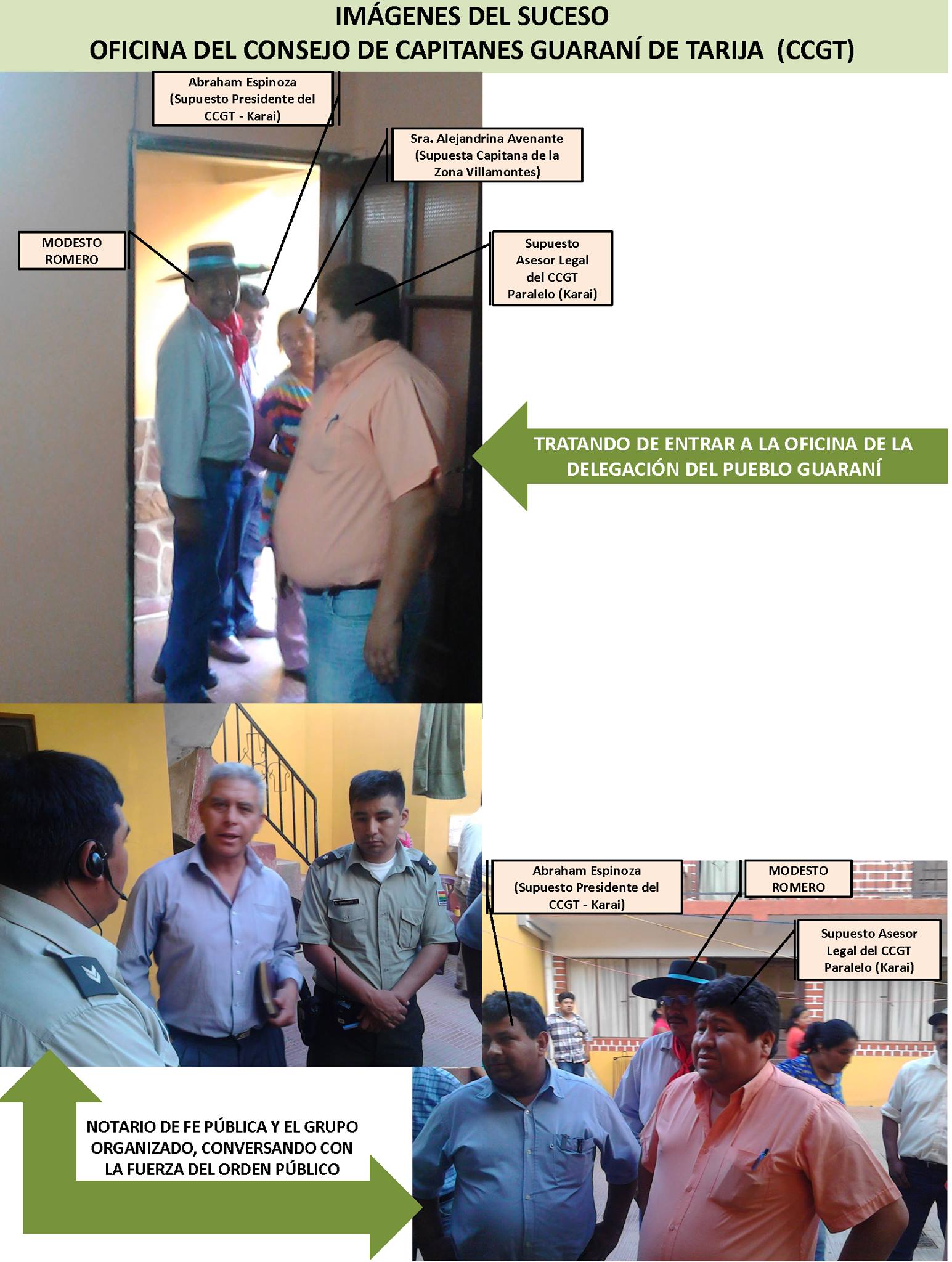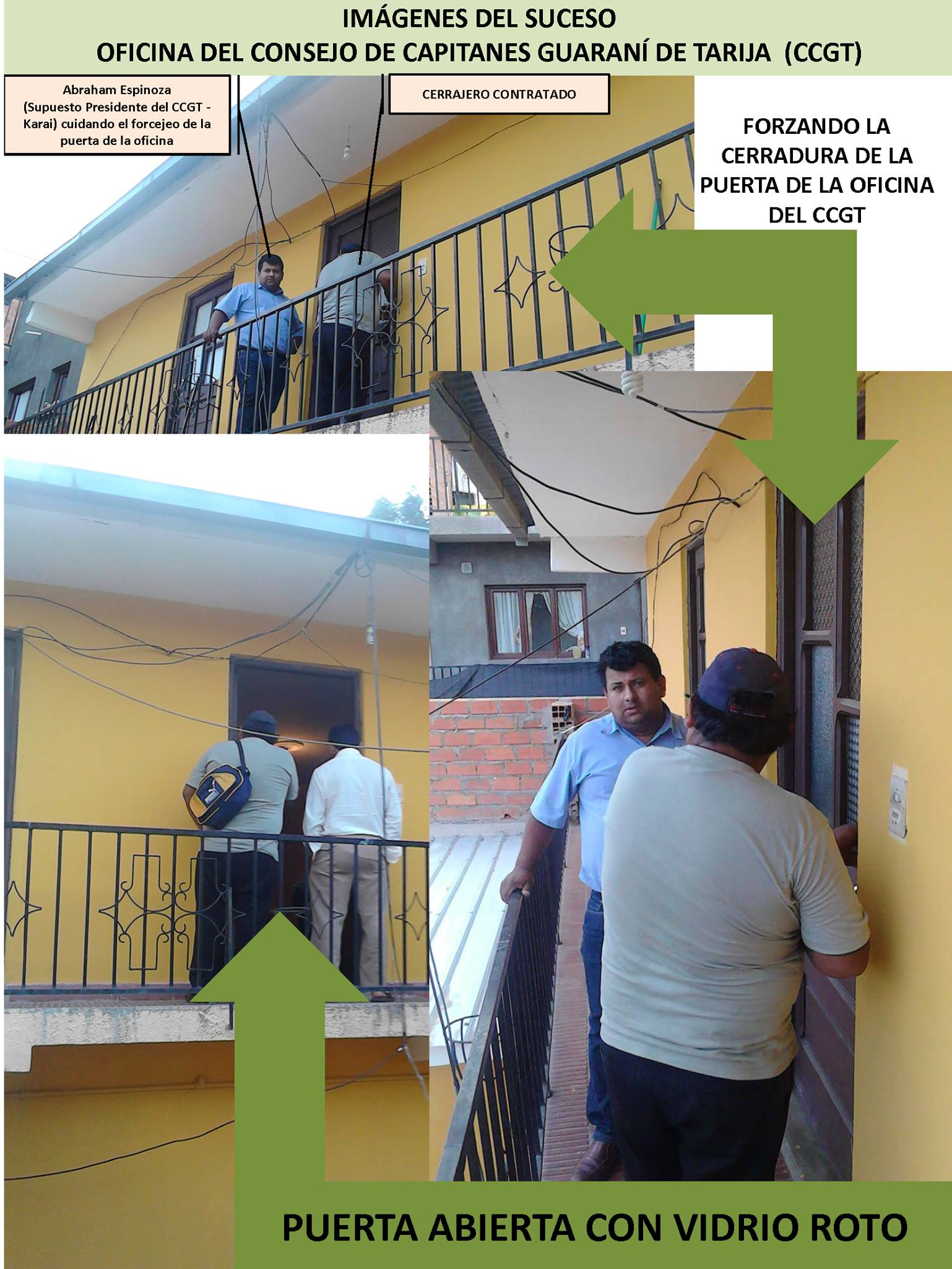 Las organizaciones guaranís del Departamento de Tarija se encuentran especialmente afectadas por esta nueva maniobra de usurpación y que es concordante con la campaña racista que lleva adelante el Subgobernador Walter Ferrufino, por lo que manifestamos nuestro repudio a la actuación de Abraham Espinoza Montoya por violar gravemente lo usos y costumbres guaranís.
