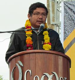 Discurso del presidente de la APG IG Mburuvicha Never Barrientos en el acto de la firma protocolar de la adjudicación de la pavimentación de la carretera Entre Ríos - Palos Blancos el 13 de abril de 2014