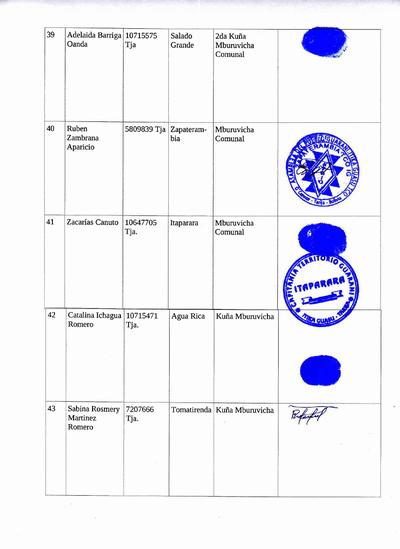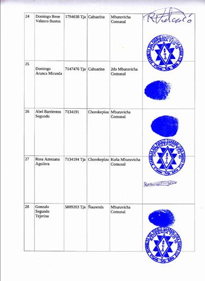 Se ha verificado que se encuentran los Mburuvichas de las comunidades detalladas por orden alfabético, los cuales tienen el acta de nombramiento depositada y, por lo tanto, tienen un mandato válido.