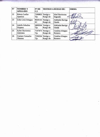 - Carta notariada notificando a Hugo y Rene Arevayo el acta de sanción condenatoria por usos y costumbres en la jurisdicción indígena de la TCO Itika Guasu contra los mismos. Acta de fecha 05 de octubre de 2012.
