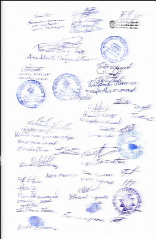 Las autoridades legales y legítimas del pueblo guaraní del departamento de Tanja, habiendo sido informados de la abusiva criminalización que pretende hacer la empresa YPFB cuando el pueblo guaraní reclama el respeto a sus derechos y en lugar de respetarlos procede a procesarlos penalmente.