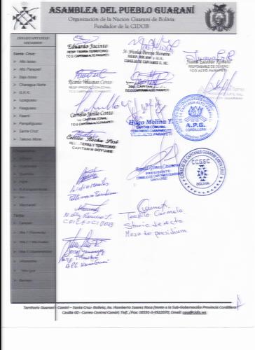 [Fuente: Consejos de Capitanes Guaraní de Santa Cruz, Chuquisaca, Tarija y APG Nacional, Capitanía y Comunidades de la TCO Alto Parapeti, Comunidad Caraparicito, 17 y 18jun15]