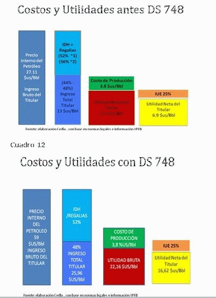 Entonces, podemos colegir que con el excedente generado por el "gasolinazo" se iba a mejorar la capacidad fiscal -tan dependiente de la renta petrolera y tan presionada por el aumento del gasto para desarrollar aún más la misma política populista- y, al mismo tiempo -al hablar del "incentivo" y de un "fondo de incentivo"- beneficiar a las transnacionales garantizando mayores ganancias para inducirlas a mejorar la exploración y producción de petróleo.
