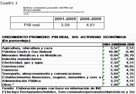 Es importante contextualizar un poco para ver lo que está pasando en Bolivia. Si vemos la siguiente información (cuadro 1), se observa cómo ha crecido la economía durante el periodo 2006-2009, período de gobierno del MAS.