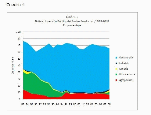 Empero, lo que revela la información es que entre el 2006 a 2009 se ha profundizado el patrón primario exportador, que trae como consecuencia el debilitamiento y el abandono del sector interno de la economía. Por eso afirmamos que el gobierno de Evo Morales es neoliberal, pues consolida una política tradicionalmente burguesa –aplicada desde la época liberal-, que profundiza ese patrón impuesto por la división internacional del trabajo en el capitalismo, con un estado rentista que actúa en detrimento de los sectores productivos y de la posibilidad de crear el mercado interno.