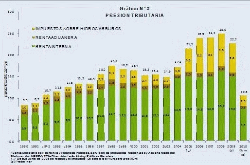 Todo esto significó la consolidación de la condición rentista del estado. No ha cambiado nada respecto al neoliberalismo. En este contexto se explica el crecimiento sostenido de la presión tributaria, que significa cuánto se paga en impuestos respecto al PIB.