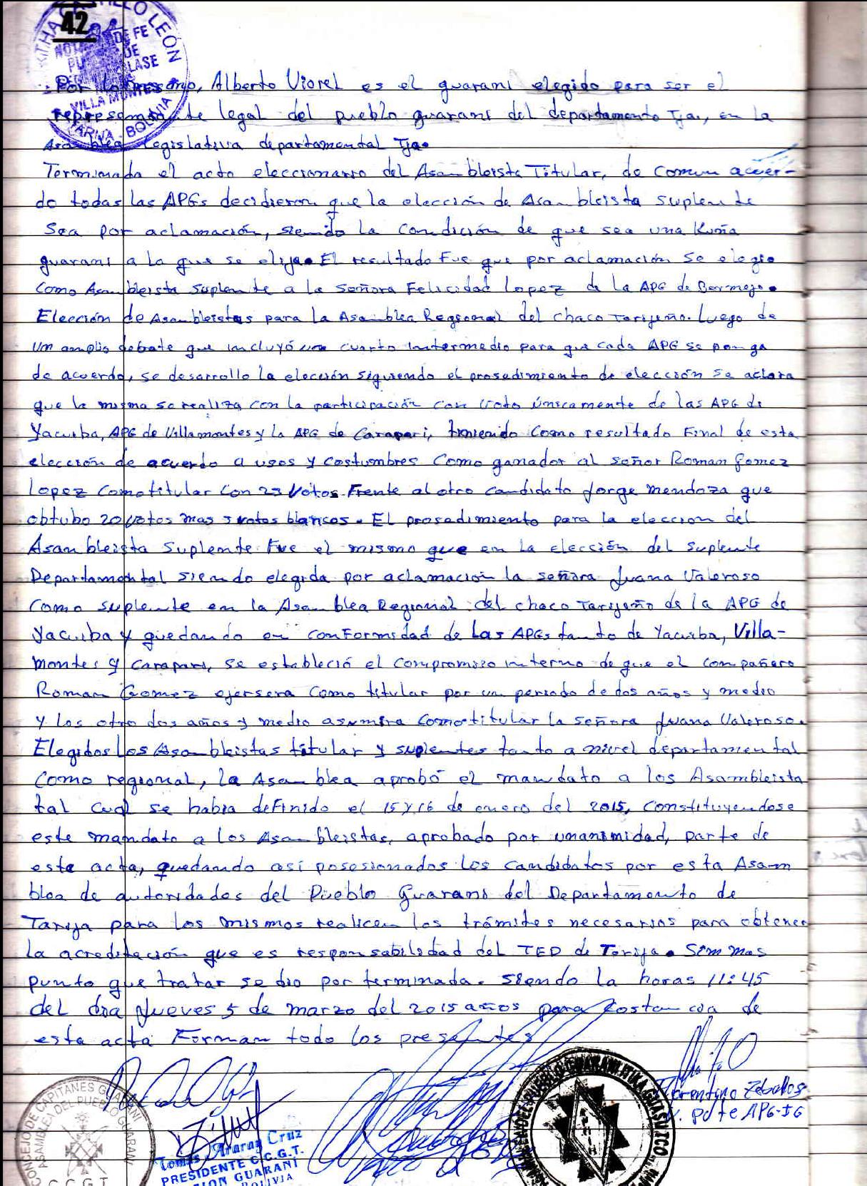 [Fuente: Asamblea departamental de organizaciones guaranis, Yacuiba, 05mar15]