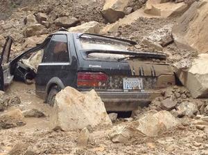 "Un inocente ciudadano que transitaba el día lunes 16 de febrero en horas de la noche 19:00, a 20:00 horas, a causas de derrumbes fue enterrado en su automóvil que se dirigía a Entre Ríos, gracias a Dios salieron a tiempo del motorizado", explicó el ejecutivo del transporte libre de Tarija, Hugo León.