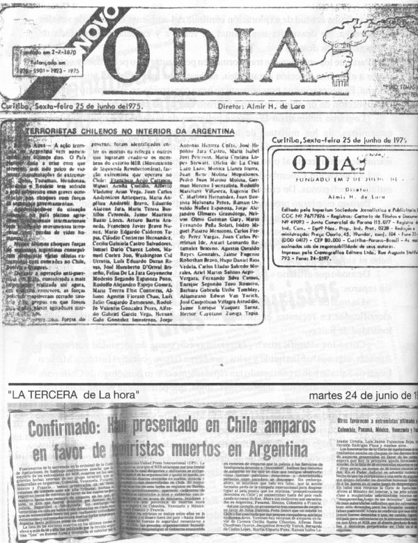 El diario «La Segunda», así como «El Mercurio» y «La Tercera» reproducen esta vez la noticia dada por un diario brasilero. El diario de la ciudad de Curitiha, «0'Día» que bajo el subtítulo «Lista de Identificados», informa que «en los dos últimos choques con las fuerzas de gobierno argentinas, fueron identificados, entre los muertos, heridos y evadidos, los siguientes miembros del Movimiento de Izquierda Revolucionario. MIR».