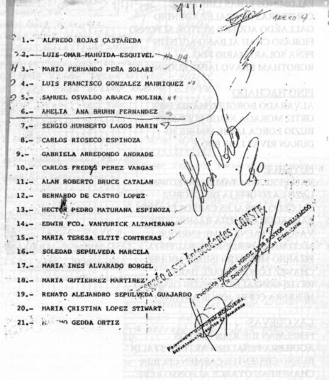 En la Brigada Purén se desempeñaban además los siguientes agentes: