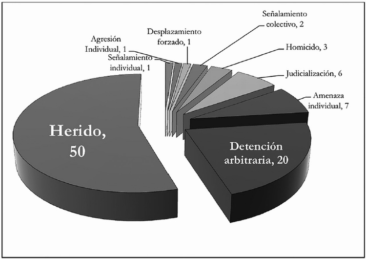 Partiendo de esta premisa, hemos recopilado en la Figura 1 los acontecimientos vulneratorios contra dicho conjunto de protagonistas de las reivindicaciones sociales: