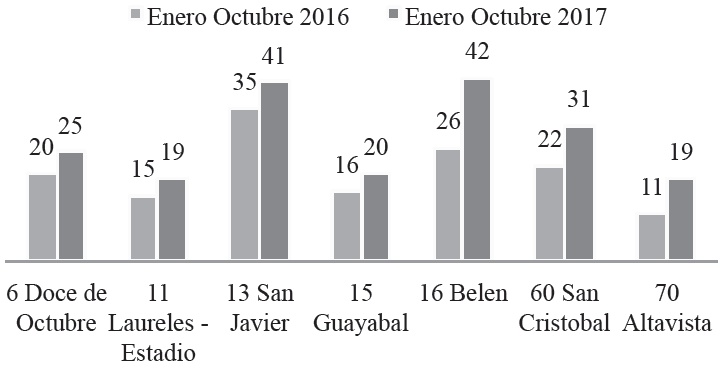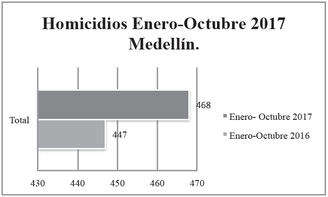 25. INFORME DE INDICADORES DE SEGURIDAD Y CONVIVENCIA EN MEDELLÍN. Periodo de análisis: enero 1 - octubre 31 de 2017Sistema de Información para la Seguridad y la Convivencia - SISC. Secretaría de Seguridad y Convivencia Alcaldía de Medellín. Página 44 [Volver]