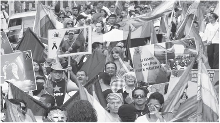 Otro sector social vulnerado en sus derechos se hace presente en este informe, como es la población LGTBI, la cual denuncia una continua violación a sus derechos en todos los ámbitos, pues no solo hay una estigmatiza-ción y persecución a su orientación sexual, sino también a las pocas o nulas garantías laborales, educativas, participativas y sociales que les excluye del Estado Social de Derecho como reza en la constitución política colombiana. Por parte del gobierno departamental y del municipio de Medellín no hay política pública de inclusión y garantía de derechos reales, sino únicamente un discurso sobre el respeto a la diversidad sexual y la inclusión. También se plasma en este informe que no son reconocidos como víctimas del conflicto armado, además los crímenes no son investigados y están en total impunidad, lo que agrava el panorama, pues los crímenes de odio homo-fóbico tienden al aumento cada día. Las instituciones estatales revictimizan con la actitud de omisión o incluso con persecución militar o policial. Estas acciones no corresponden a un Estado que supuestamente busca superar el conflicto y la exclusión social.