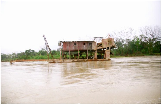 La primera forma es la minería aluvial que supone la extracción directa de metales del lecho de los ríos por medio de dragas de succión y aplicación de mercurio; la segunda forma es la minería de veta a cielo abierto por medio del uso de retroexcavadoras que levantan grandes capas de tierra, dando con ello apertura a perforaciones profundas en las que se utiliza también el mercurio para lograr la separación del mineral.