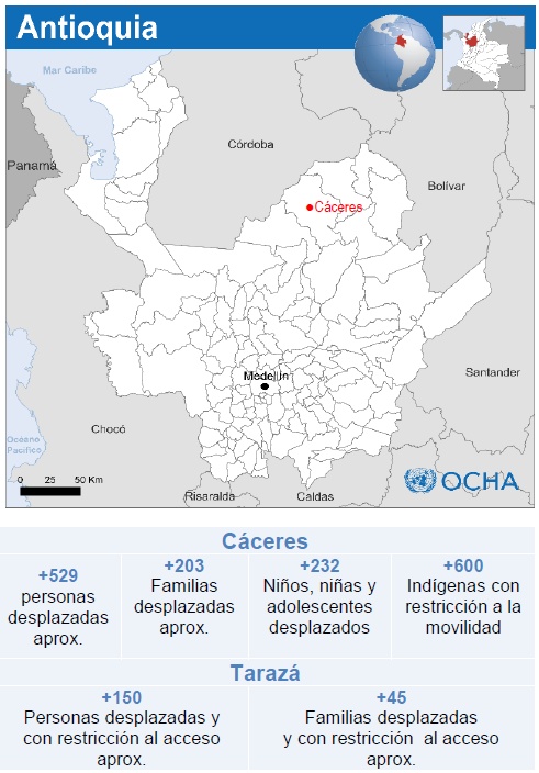 [Fuente: Oficina de Coordinación de Asuntos Humanitarios de las Naciones Unidas (OCHA), Cáceres y Tarazá (Antioquia), 31ene18]