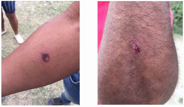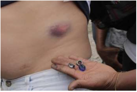 Aproximadamente a las 2:00 de la tarde, cuando Luis Fernando Enríquez, defensor de derechos humanos, en su labor se disponía a recepcionar, la información de una persona afectada por los gases lacrimógenos en una vivienda y al intentan ingresar a la misa, siente que es alcanzado por un proyectil de una aturdidora que contenía metralla.