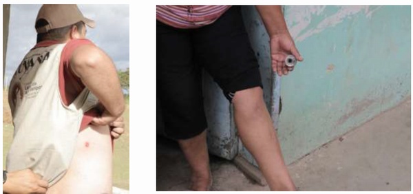 Rosa Elvira Piso Camayo, identificada con cc. 31970457. El smad lanzaba gases al interior de la vivienda, generándoles asfixia a toda la familia principalmente a los menores de edad, además tuvieron daños en la propiedad como los techos. (Anexa imagen)