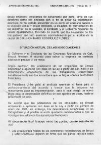 Pero la crítica situación de la Empresa no es el único interés del Sindicato, pues como ha sido de público conocimiento, la central obrera del Valle CUT y sus filiales, como también otras organizaciones sociales y no gubernamentales sobre las cuales la subversión ejerce completo dominio, han venido siendo parte activa en la lucha que se viene gestando por el "acuerdo humanitario" para la liberación de los secuestrados, contra el Referendo y por la concesión de una nueva zona de despeje para dialogar con las FARC; motivos estos, que hacen más recia la posición de estos sectores de izquierda ante el papel del Gobierno Nacional.