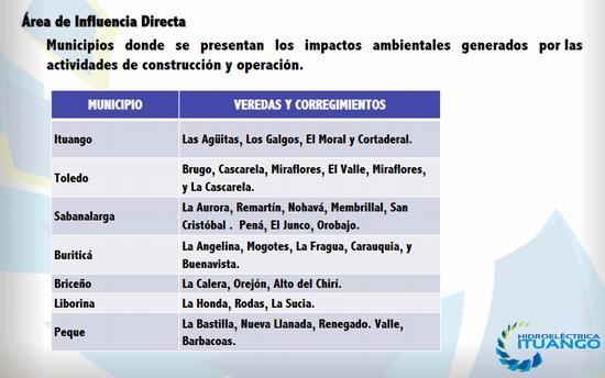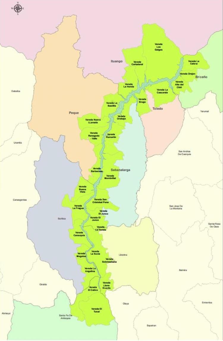 Hidroituango donde se identifica a 7 veredas y un barrio del municipio