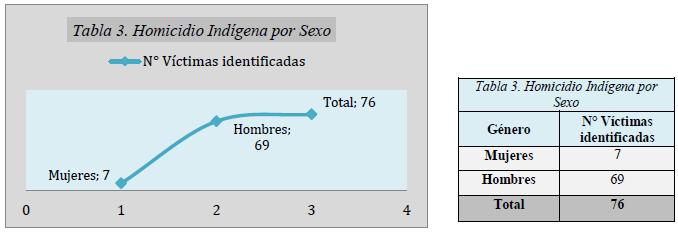 En cuanto al análisis geográfico de homicidios, el Sistema de Información reporta los departamentos de mayor victimización en los siguientes términos: el Departamento del Cauca concentra el 30.26%, seguido de Nariño con 15.78 % y Risaralda con el 11.84 % de los homicidios ocurridos en el año. Se constata que para el año 2011, los pueblos con mayor victimización fueron las mismas que presentan mayores índices de homicidios en el año 2010: Nasa (45), Awá (25), Zenú (18) y Embera (14). Lo cual denota que la situación se agrava y no mejora en las mismas zonas del país.