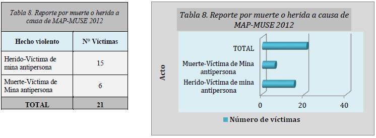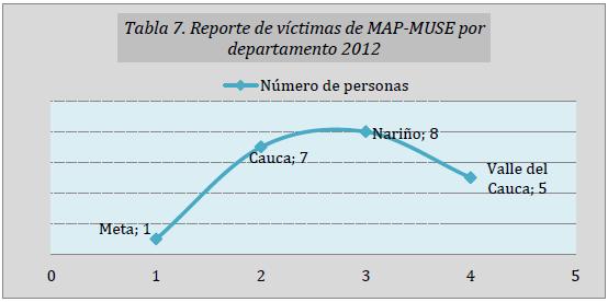 Las minas antipersonales y los artefactos o municiones sin activar han dejado en Colombia gran cantidad de víctimas, lo cual es una grave violación al DIH. Para el año 2012, de las 21 víctimas reportadas dentro de las comunidades indígenas once (11) corresponden a niños entre 9 y 18 años, quienes resultaron siendo víctimas de estos artefactos usados en el conflicto y prohibidos por el DIH.