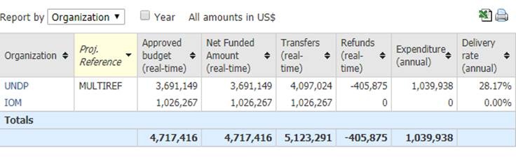Por lo explicado, es decir, porque los recursos los manejaba directamente la ONU, la Secretaría no cuenta con las cifras oficiales de asignación y ejecución del presupuesto inicial mencionado, pero está solicitando dichas cifras. En todo caso, el MPTF publica regularmente la ejecución de los recursos de sus proyectos en su página web. En relación con el N° 104525 relativo al "Apoyo a la Jurisdicción Especial para la Paz, a través de la puesta en marcha de su Secretaría Ejecutiva", se indican las cifras correspondientes, así: