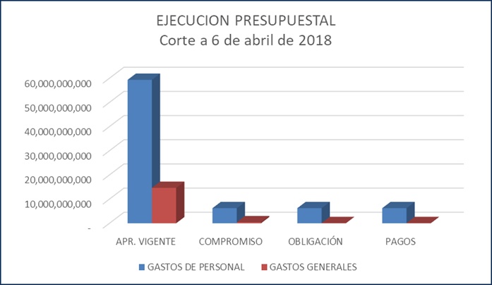 A continuación se presenta el informe de ejecución presupuestal con corte al 6 de abril de 2018: