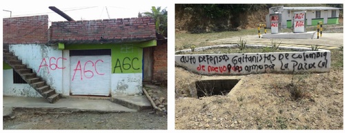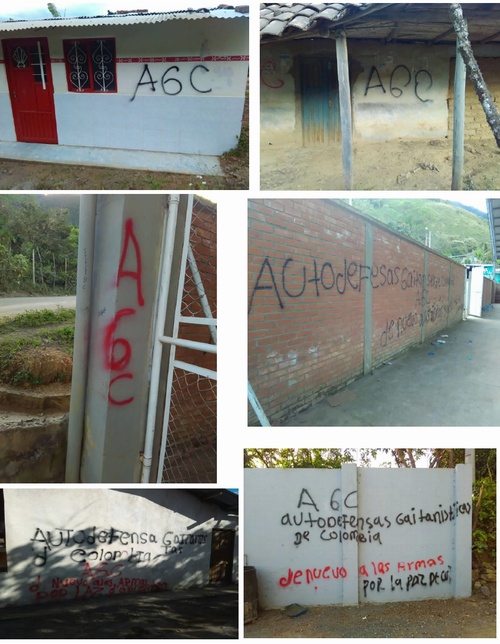 En una zona de amplia presencia militar y policial del Estado colombiano, aparición de grafitis que contienen amenazas e intimidaciones con las siglas "AGC" referente del grupo paramilitar autodenominado "Autodefensas Gaitanistas de Colombia", en las fachadas de hogares campesinos, poste de electricidad, y estación de gasolina, en el Municipio de Leiva Departamento de Nariño.