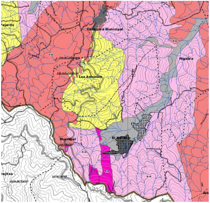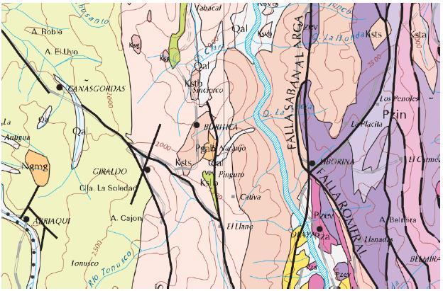 Gráfica 1: Geología de la zona del municipio de Buriticá. Tomada del mapa Geológico.