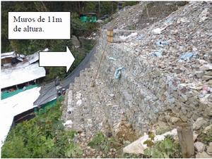 Foto 6: Sistema de gaviones, intercalan gaviones de 1m altura x1m de ancho con gaviones 1m de alto x 2m de ancho
