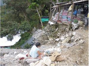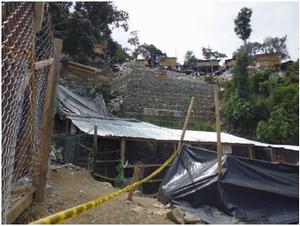 En éste lugar se aprecia una fuerte actividad comercial que gira en torno a la minería en algunos "locales", de igual manera se evidencia que las aguas residuales parecen discurrir de manera aleatoria por la ladera, produciendo olores nauseabundos. Se tiene la presencia de algunas de estas edificaciones con tolvas, en las que se procesa el material que los mineros extraen, cuyo desecho o sobrante se deposita en la cara posterior de muros en gaviones, construidos para nivelación del terreno, aprovechando el espacio resultante entre estos y la ladera, sin ninguna técnica y que potencialmente presentan posibilidad de fallar pues las alturas de estos son hasta de 11 metros, produciendo presiones en la cara inferior entre 9ton y 10ton por metro lineal, lo que los convierten en un potencial detonante de otros desprendimientos similares al presentado el día 18 de octubre de 2013, pues fue en uno de estos gaviones en los que se presentó la falla, así mismo no se aprecia en el sitio del deslizamiento algún tipo de cimentación que permita el sustento de estas estructuras agravando la situación desde el punto de vista de la ingeniera civil.