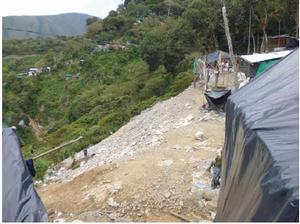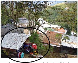 En el cual se encontró un asentamiento de 18 cambuches en materiales precarios los cuales no cuentan con la seguridad estructural que requiere una vivienda, una construcción en material con columnas y cimentaciones sin la respectiva licencia de construcción, y 2 construcciones en tabla y cemento, las cuales no cumplen con la normatividad ley 388 de 1997, dentro del esquema de ordenamiento territorial según plano R6 amenazas estas construcciones se encuentran en zona de alto riesgo por deslizamiento, para la cual se recomienda protección con reforestación debido a las altas pendientes y la calidad del suelo, al hacer una intervención de vivienda se crean grandes áreas hidrográficas de vertimientos, las cuales erosionan el suelo aumentando el riesgo del evento de deslizamiento.