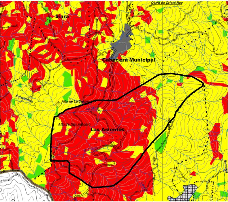 Vereda los asientos: En esta vereda se localiza el sector San Román el cual se considera el primer sector que se debe intervenir y los demás donde no se han presentado accidentes.