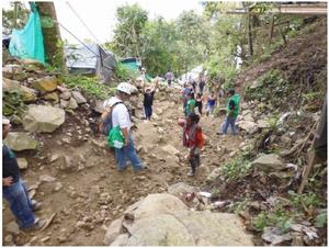 Foto 3: Sendero descenso al sitio del deslizamientos, gran cantidad de personas en el sector.