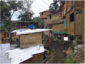 Construcción de cambuches de un día para otro debido a que los materiales son plástico, madera, clavos, las construcciones son empíricas sin resistencia estructural y los banqueos que se realizan para la instalación de las viviendas debido a las altas pendientes generan deslizamientos y aumentan la probabilidad de deslizamientos en la zona, así como dificultades en la movilidad, salubridad debido a que se realizan sin la disponibilidad de servicios públicos encontrándose por fuera del area sanitaria, generando problemáticas de saneamiento básico, humedales, ocupación de vías, tala indiscriminada de árboles, sector incontrolable ya que solo cuentan con baños comunes y el agua la cogen del sobrante de la planta de tratamiento.