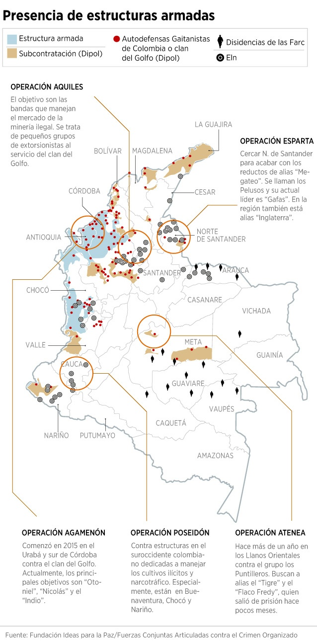 Sin duda, el proceso de paz con las Farc abrió una brecha grande en los territorios para perseguir a las bandas criminales, dijo una fuente de inteligencia del Cuerpo Élite.