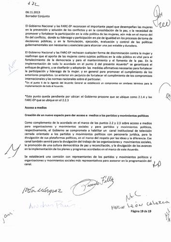 El Gobierno Nacional y las FARC-EP reconocen el importante papel que desempeñan las mujeres en la prevención y solución de los conflictos y en la consolidación de la paz, y la necesidad de promover y fortalecer la participación en la vida política de las mujeres, aún más en el marco del fin del conflicto, donde su liderazgo y participación en pie de igualdad en los procesos de toma de decisiones públicas, y en la formulación, ejecución, evaluación y control de las políticas gubernamentales son necesarias y esenciales para alcanzar una paz estable y duradera.