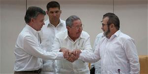 El mandatario colombiano hizo el anuncio en compañía del presidente de Cuba, Raúl Castro, y el jefe de las FARC, Rodrigo Londoño Echeverri, alias 'Timochenko', lo que constituye un hecho histórico para Colombia.