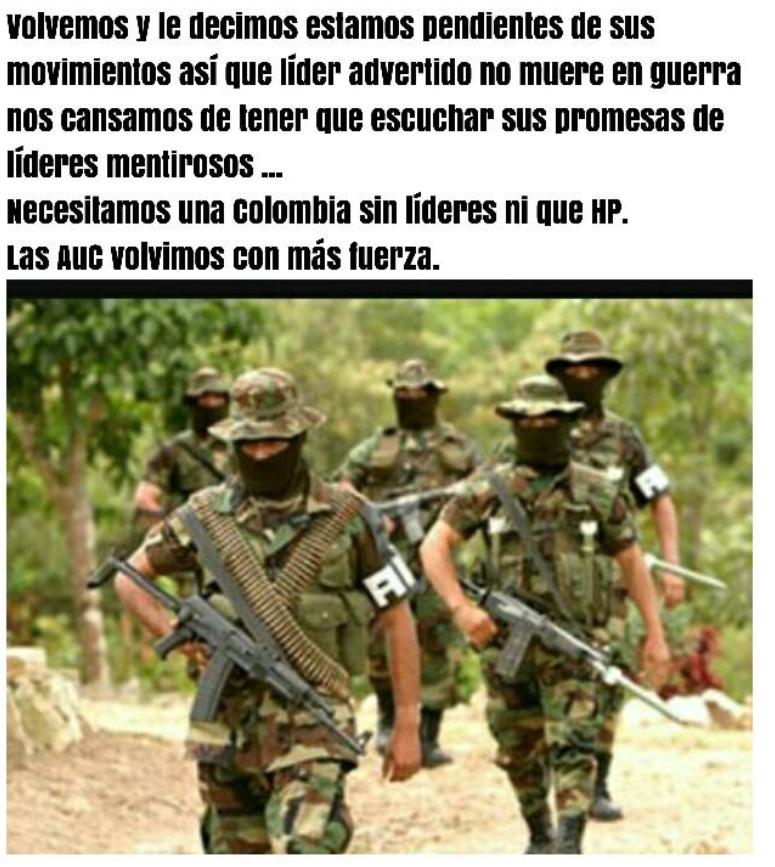 El grupo paramilitar AUC en contra de dirigentes campesinos y defensores del Cauca
