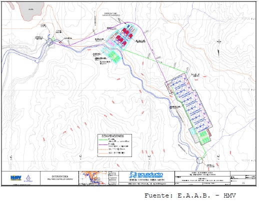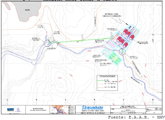 QUINTO: Así mismo, las obras sobre las que trata el literal e) del ordinal anterior, se construirán en el siguiente término y con cargo a las siguientes entidades y recursos: a) Para los efectos de la construcción del interceptor TUNJUELO - CANOAS para el cual la EAAB no lo tiene proyectado dentro de las tarifas, el DISTRITO CAPITAL deberá realizar una transferencia de recursos superior al 30% del 41% del Propósito General, de tal forma que alcance a cubrir su terminación; b) La misma transferencia deberá continuar haciendo una vez se haya construido dicho interceptor dentro del plazo convenido en la propuesta de pacto y aprobado por el tribunal, en un porcentaje que no podrá ser inferior al 50% del 41% del Propósito General, con destino a la construcción de la Planta de Tratamiento de Canoas y para su posterior operación y mantenimiento, hasta tanto la EAAB pueda asumir su costo con cargo a las tarifas; Para tales efectos se conminará a la NACIÓN -MINISTERIO DE HACIENDA Y CRÉDITO PÚBLICO para que cumpla en forma oportuna Y SIN DILACIONES con la obligación de transferir al Distrito los recursos de la Ley 715 del Propósito General; c) Siendo insuficientes los anteriores recursos para la construcción de la PLANTA ELEVADORA DE CANOAS, LA PLANTA DE TRATAMIENTO DE CANOAS y el interceptor CANOAS ALICACHÍN, su costo debe ser cubierto no solo con las transferencias de ley 715 por parte del Distrito acabada de señalar, sino con las transferencias que la CAR debe hacer al DISTRITO CAPITAL por el 50% del Predial, previa deducción de los costos de ampliación de la PTAR SALITRE, y en lo que reste, serán los recursos por tasa retributiva incluida en las tarifas de la empresa prestataria del servicio proyectados al año 2009, los que deben quedar afectos para su construcción para lo cual deberá constituirse un FONDO CUENTA con todos los recursos que en forma oportuna deberán trasladar las entidades involucradas. En ese orden, teniendo en cuenta la magnitud de las obras que la EAAB está emprendiendo y debe ejecutar en un lapso que no puede sobrepasar al año 2009, se requiere para la aprobación de los correspondientes créditos, que la NACIÓN preste su aval a la empresa en orden a obtenerlos, que como se previó para el Contrato 015 pueden acudir a la pignoración de tales rentas proyectadas en los años según el precio de las mismas, que permita la pronta consecución de los recursos con los que deben ejecutarse las obras. El pago de los réditos de la deuda se hará con cargo a los recursos de la Nación teniendo en cuenta que todos las entidades demandadas han cohonestado con su actuar omisivo a la agravación del daño ecológico como ampliamente ha quedado analizado en esta sentencia, por lo que todas deben contribuir con sus recursos a la restauración de las fuentes de agua afectadas tal y como lo prevé el artículo 34 de la Ley 472 de 1998; d) De igual manera, para efectos de la operación y el mantenimiento de la PTAR CANOAS se hará con cargo a los recursos por Ley 715 del Distrito Capital que perciba después del año 2009, y con las transferencias del sector eléctrico a la CAR y a los municipios, especialmente Sibaté que recibe un porcentaje mayor que los demás, de la siguiente manera: El Distrito Capital aportará el 50% del 41% del Propósito General, la suma que reste del precio de la operación descontado dicho porcentaje será cubierta por partes iguales por la CAR, el MUNICIPIO DE SIBATÉ y por los municipios que reciben las transferencias, considerados estos últimos como una sola parte para efectos de dividir en tres partes el saldo; e) Una vez pagada la deuda por concepto de la construcción de la PTAR CANOAS, la EAAB asumirá su operación y mantenimiento con cargo a las tarifas como lo prevé el artículo 16 de la Resolución CRA 287 de 2004 y con el apoyo de los recursos acabados de señalar.