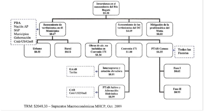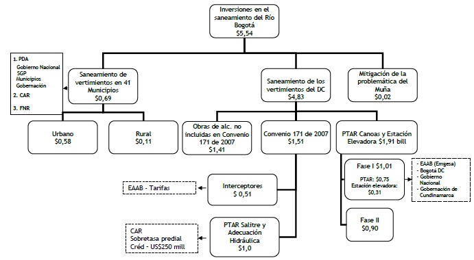 208. Fuente Estructura: Informe Final septiembre de 2000 Unión Temporal Saneamiento Rio Bogotá CD Anexo EAAB. CEPAL, Autoridad de Cuenca Manual para la gestión integrada de Recursos Hidricos en Cuencas, GWPforum. Documento DAMA. [Volver]